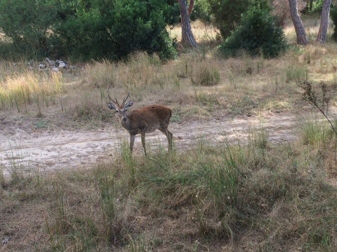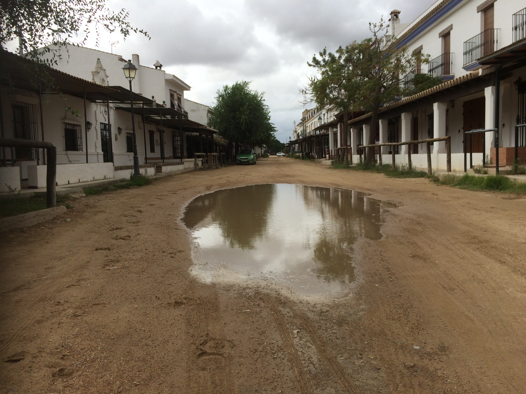 Wenn man nun am Guadalquivir nahe den Vögeln und dem anderen Getier sein will, so hat man mehrere Möglichkeiten der Unterkunft. Direkt an der Küste gibt es den Ort Matalascañas, eines dieser spanischen Dörfern, die fast nur aus Zweitwohnsitzen bestehen. Und in deren Häusern im Herbst am Abend kaum ein Licht brennt. Man kann im Parador übernachten, der direkt über den weißen Sandsteinfelsen liegt. Ein Sonnenuntergang ist schöner als der andere. Oder man zieht die Tradition vor und man sucht sich ein kleines Hotel in dem Ort, in dem das andalusische Herz wild und laut schlägt. Das Dorf El Rocío besteht im Großen und Ganzen aus staubigen Strasse, Pferden, einer Menge kleiner Häuschen und einer Wallfahrtskirche. An Pfingsten brennt da die Hütte: ganz Andalusien reist an auf Pferdewagen und in Pünktchenkleidung. Es gibt Bruderschaften, die nur zu diesem Zwecke im Dorf ein Haus unterhalten. Am Tag der Tage stehen die stärksten Männer am Metallzaun in der Kirchen und warten darauf, drüber klettern zu dürfen. Dann geht der Kampf um die Madonna los. Sie wird auf den Sandplatz vor der Kathedrale getragen und von Bruderschaft umkämpft. Aber eigentlich darf jeder sie mal tragen. Dann ist das Fest zu Ende und alle reisen wieder heim. Der Rest der Jahres besteht der Ort aus Staub, Souvenirläden und Vogelkundlern, die mit ihren Spektiven, also den Ornithologenferngläsern, in der Lagune direkt am Dorf einiges zu besichtigen haben. Obwohl der Sommer ausgesprochen trocken war, gab es Reiher in verschiedenen Ausprägungen, Seidenreiher, Kuhreiher, Silbereiher, Löffelreiher. Wir sind ja zufrieden, die Tiere beobachten zu können. Ein Profi mit entsprechender Ausrüstung muss hier in einen Vogelrausch verfallen. Von den Terrassen der kleines Hotels kann man direkt die Flamingos beobachten. Naja, wir haben sie am Horizont gesehen. Eine junge Frau aus einem Andenkenladen fragte, woher wir kommen. Ja, nach Deutschland, da würde sie gerne gehen. Und was mit Pferden machen, ihr Traum sei das. Wir machen hier alle was mit Pferden. Also, wenn jemand einen Platz für eine junge Frau hat, die nicht mehr auf einen staubigen Kathedralenvorhof schauen will, der fragt nach in El Rocío.