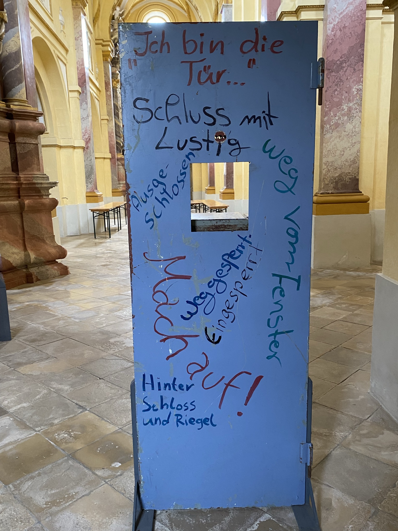 Jetzt hab ich doch fast das Kloster Ebrach vergessen. Also, früher Kloster, jetzt Gefängnis. Beim ersten Besuch konnten wir nicht in die Kirche rein, der Bayrische Rundfunk übertrug ein Konzert. Dann eben nochmals.