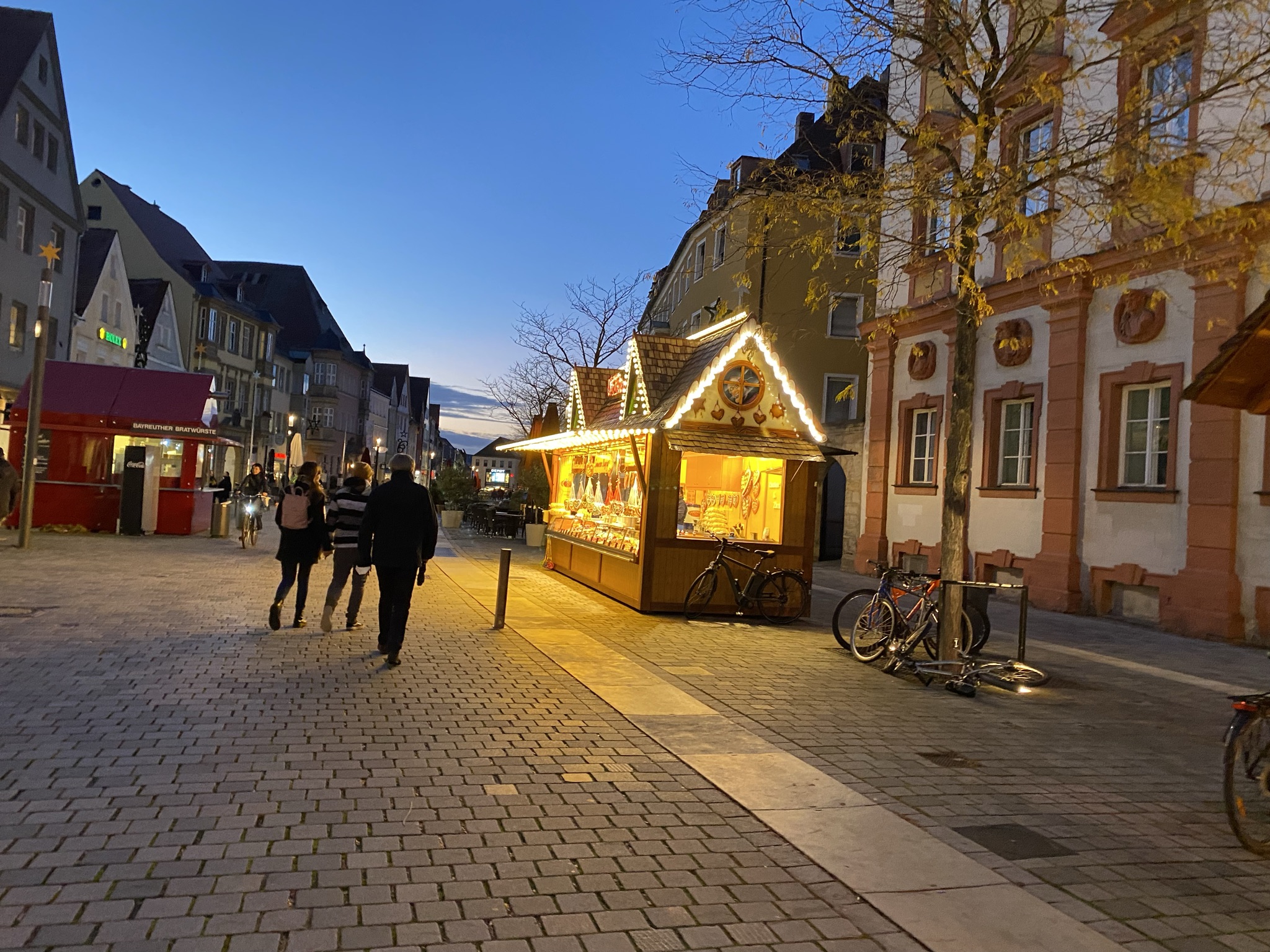 Heute mochte ich noch ein bißchen aus Bayreuth berichten. Es hatte einen Sturm gegeben. Bei Abendspaziergang am schon offenen Weihnachtsmarkt, im Oktober!, kamen wir an einem alten Gebäude mit Fachwerkhof vorbei vorbei. Auf einem Plakat steht, dass es ein Klavierkonzert gibt. Sicher im Opernhaus, sagte ich.
