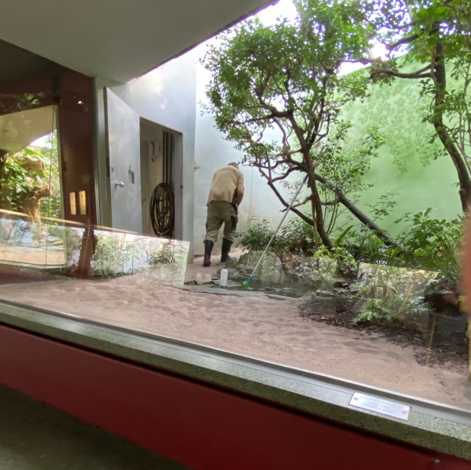 Jetzt noch ein bisschen Zoo ohne Tiere, nur mit einem Homo Sapiens am Besen.