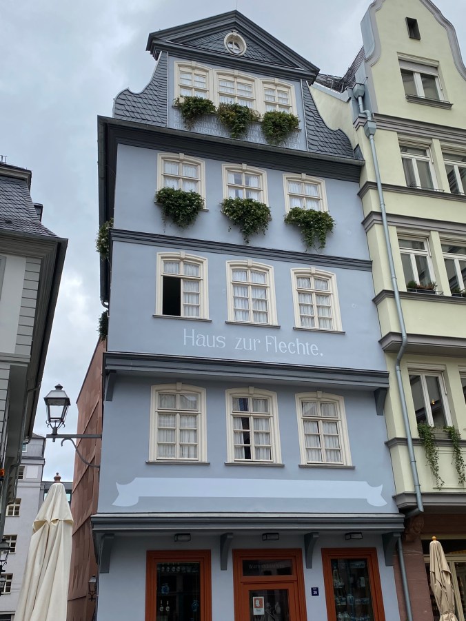 Das Haus der Flechte ist nur scheinalt. Es ist aus Stahlbeton und macht auf Geschichte. Ganz Frankfurt ist älter.