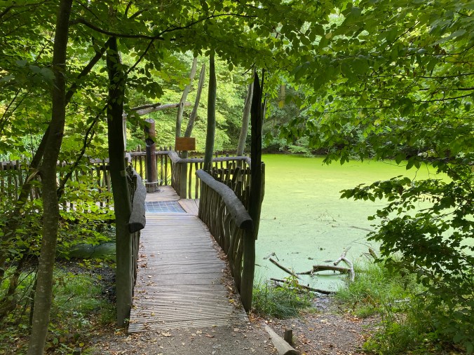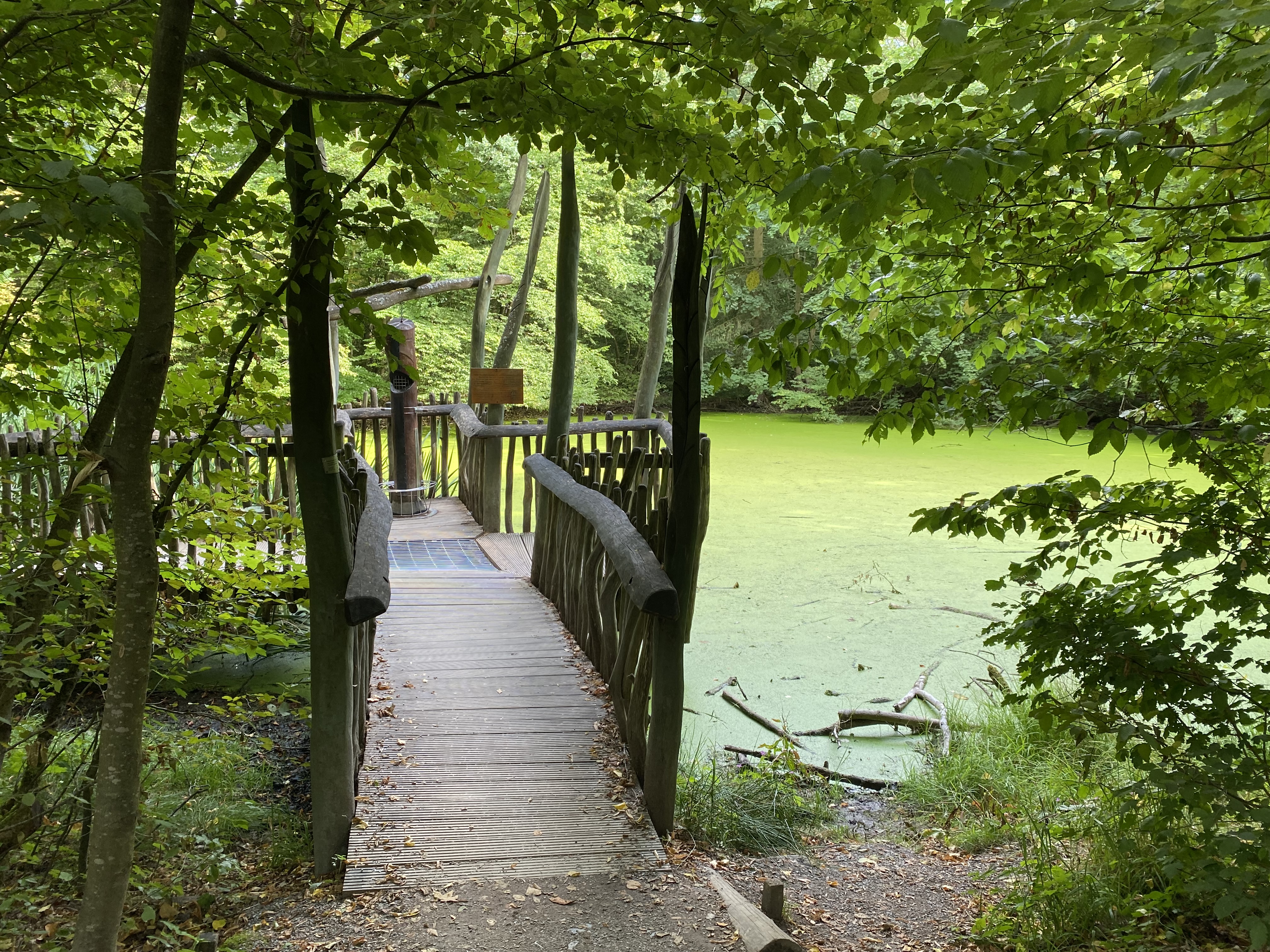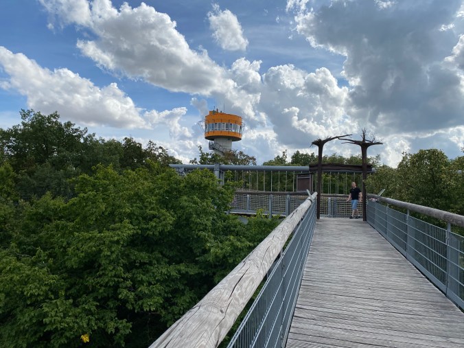 Der Baumkronenpfad ist beeindruckend. In zwanzig Metern Höhe zwischen all den Buchen, Eschen und Erlen (da bin ich mir nicht sicher) sind immer wieder Informationstafeln zu Tieren und Pflanzen zu findet. Richtig beeindruckend war, dass die Bäume sich bewegten, sogar richtig schwanken, obwohl kein Wind weht.