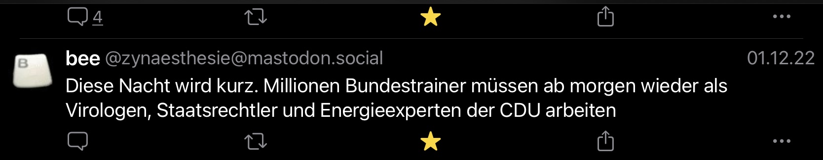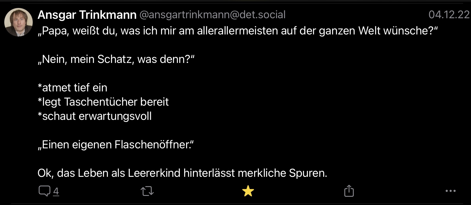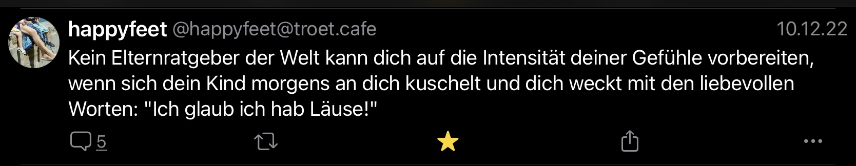 Leider kann man die Tröties nicht so leicht einbauen wie die Tweets. So mache ich es wie Frau Kaltmamsell und fotografiere sie einfach ab.
