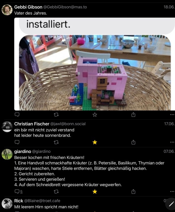 Ein Sammelsurium aus Twitter und Mastodon im Juni. Subjektiv und wie ich hoffe, unterhaltsam.