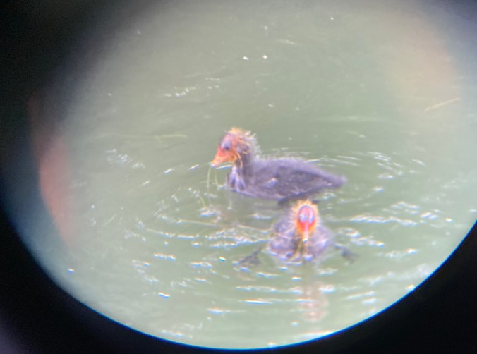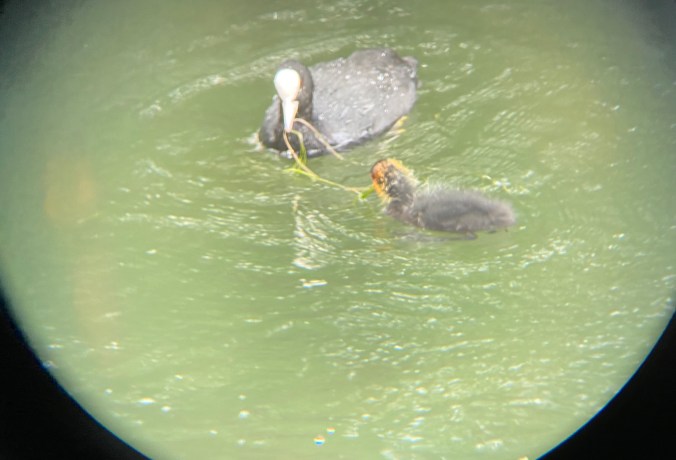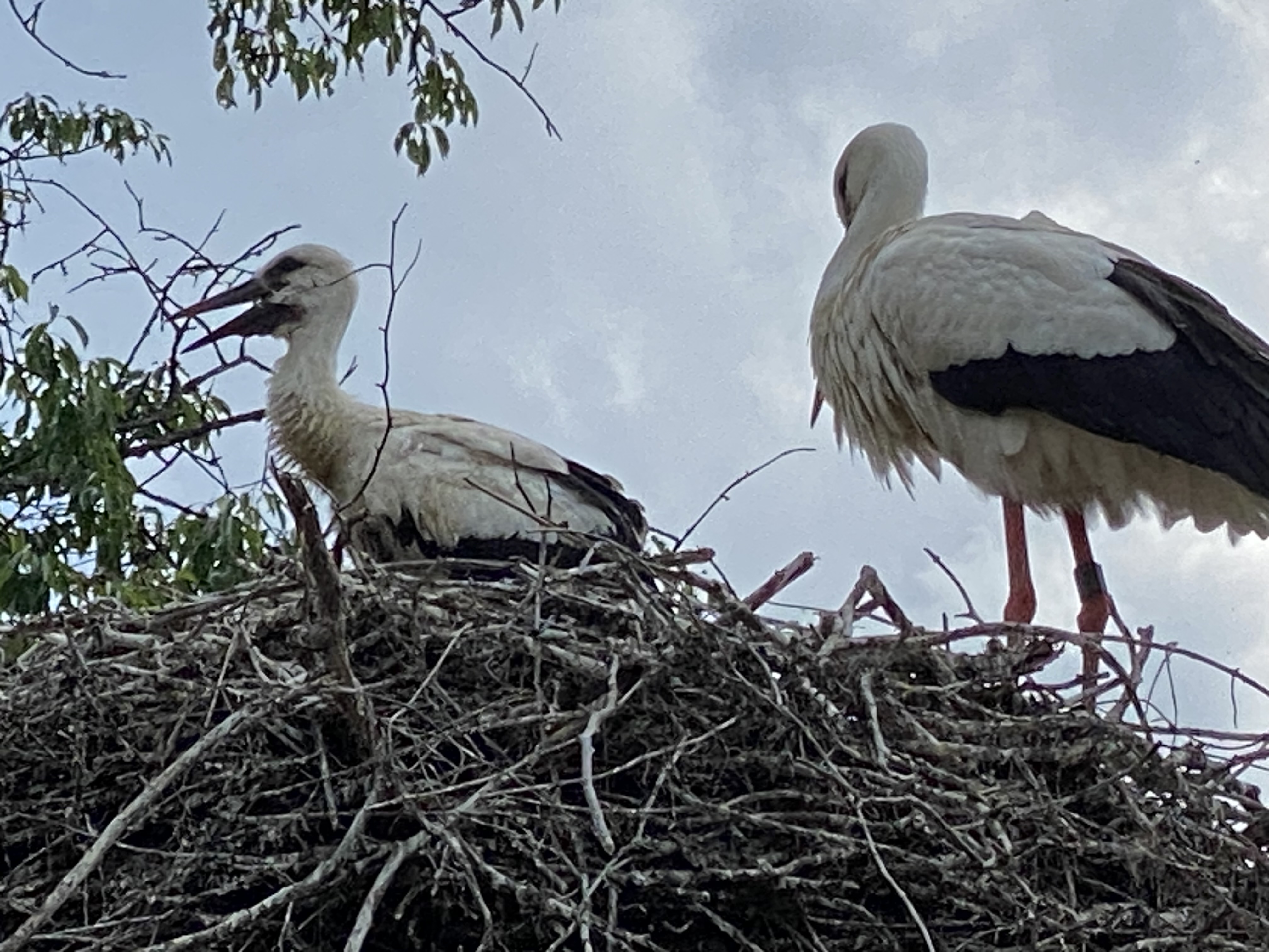 Die Eltern klappern und die Jungen stecken ihre schwarzen Schnäbel und ihre zerzauste Frisur in die Gegend. Kommt ein Elternteil mit dem Futter zurück, wird die Beute rausgewürgt und fliegt mitten unter die Jungen. Die müssen nun schauen wo sie bleiben und schnell zufassen, sonst wird das nichts mit dem Überleben.