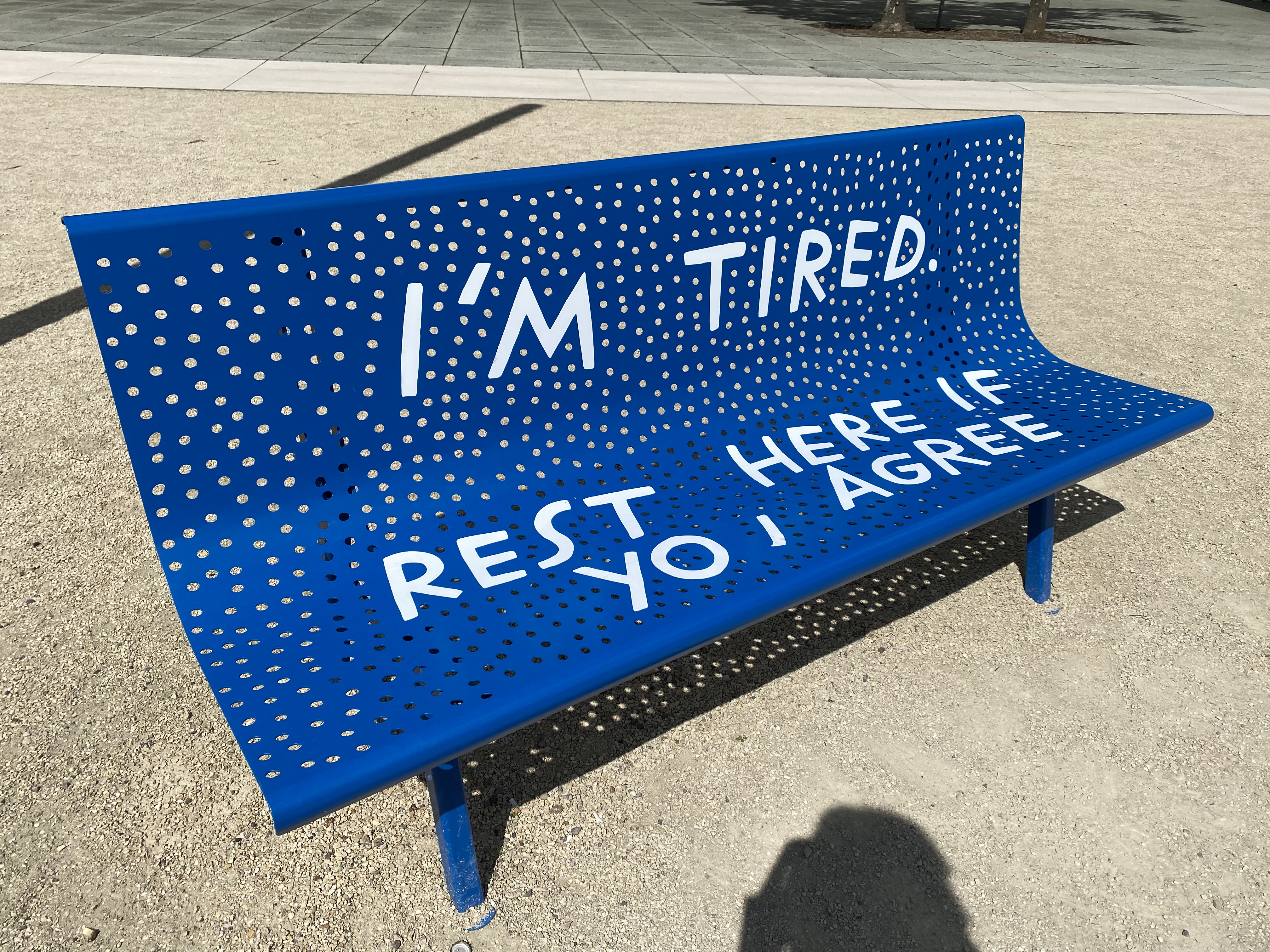 Davor gibt es Wasserspiele und Gedenkstelen. Eine Fotobox liefert Bilder, wie Tiere uns sehen. Lustig ist, dass man rein sitzt und dann auf die Wartenden vor der Box angewiesen ist, die rufen, wohin man denn sein Haupt wenden soll.
