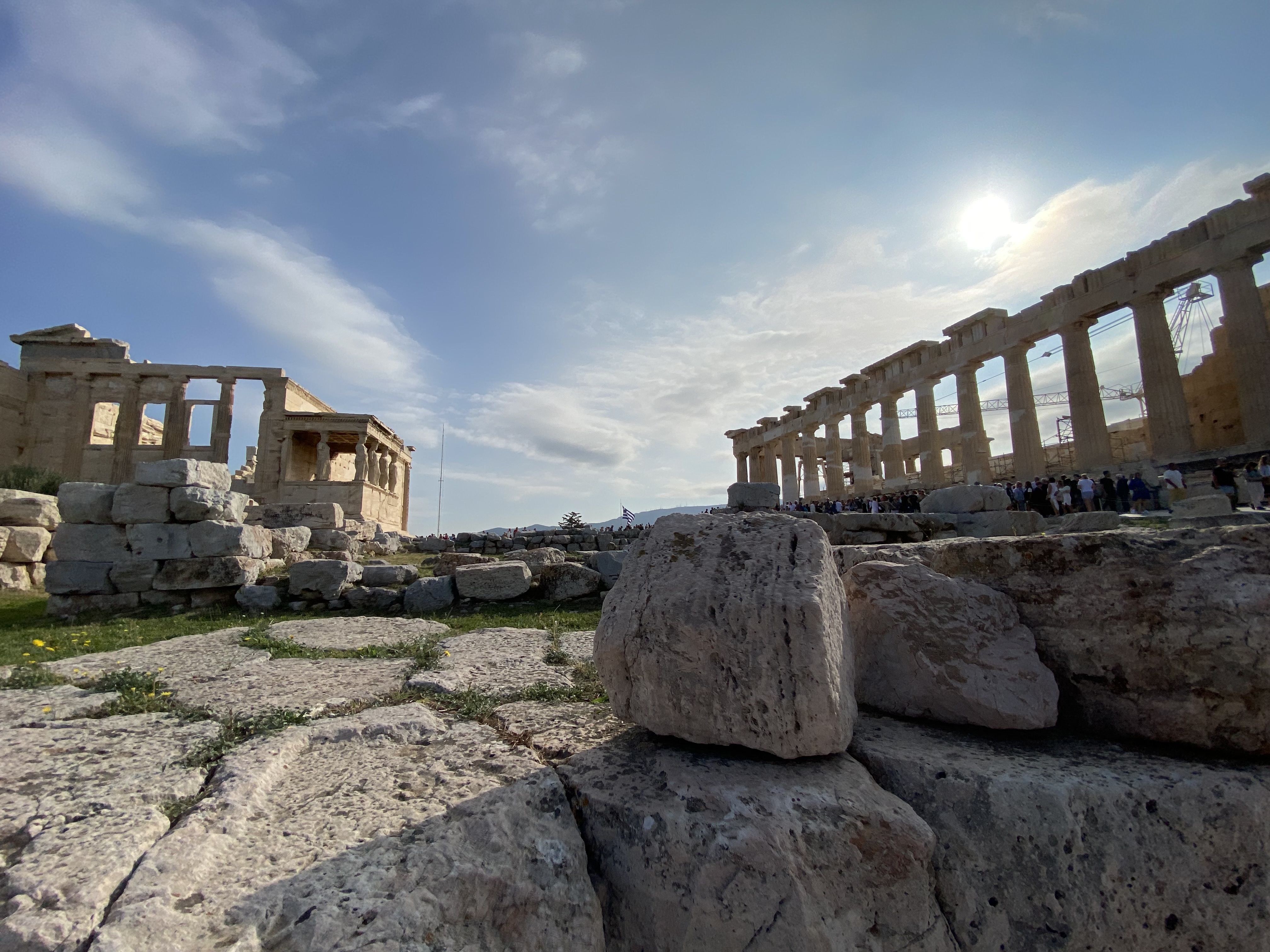 Die Akropolis hat seit einem Jahr einen Glasaufzug für Menschen mit Gehbehinderung. Oben hat man die schiefen und krummen Gehwege mit großen Betonplatten belegt, man kann wunderbar gehen. Drunter liegt eine Schicht Silikon, falls spätere Generationen sich die alten Wege nochmals anschauen wollen.