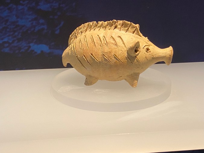 Und sie sind der Ort, wo man sehr schöne Figuren, sogenannte Idole, gefunden hat.Im Museum für kykladische Kunst in Athen sind einige von ihnen zu sehen. Sie sind sehr klar in ihrer Form, ihre Funktion ist allerdings unklar. Meist sind es weibliche Darstellungen, teilweise schwanger. Man fand viele in Gräbern aber auch am Rande von Feldern. Manchmal waren sie zerbrochen, manchmal ganz. Jedenfalls sind sie auf dem internationalen Kunstmarkt sehr begehrt und sehr teuer.