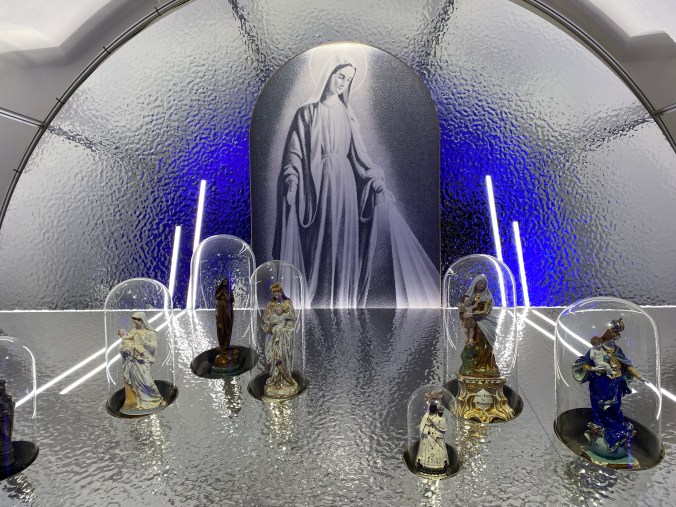 So schleust man auf der Festung die Besucher zuerst durch eine Marienausstellung und an beleuchteten Kanonen vorbei, bevor sie die Lichter von Christmas Garden an den Festungsmauern schauen können.