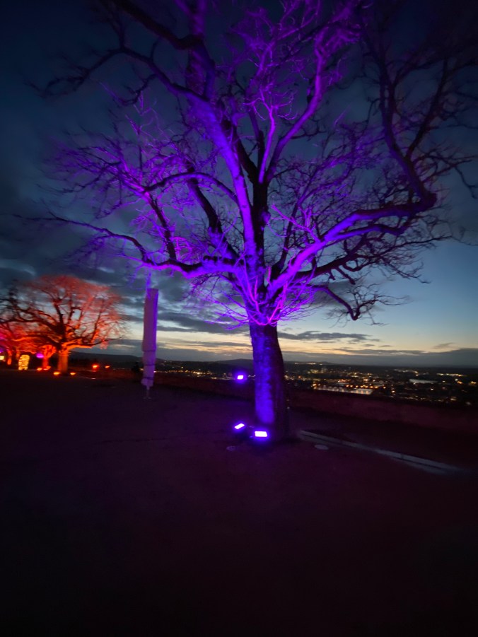 Zumindest die Seilbahn fährt zur Festung hoch. Dort ist noch Weihnachten: Christmas Garden. Die Festung ist beleuchtet, man spielt Weihnachtsmusik und es gibt Lichterspiele.