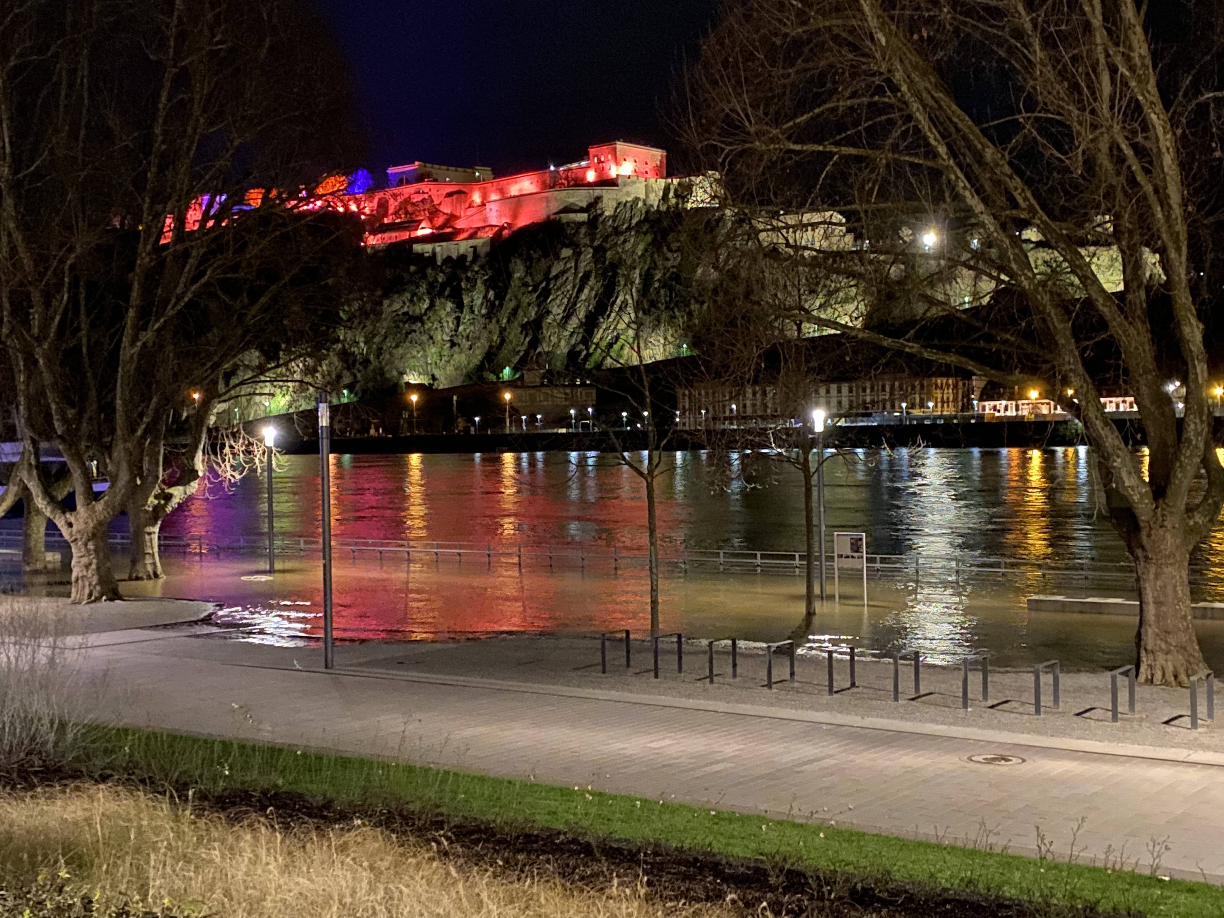 Sieht toll aus, Koblenz bei Nacht, und die Mosel kommt echt fett in den Rhein geströmt, um es salopp zu sagen. Hier in Oppenheim geht der Pegel zum Glück wieder runter…