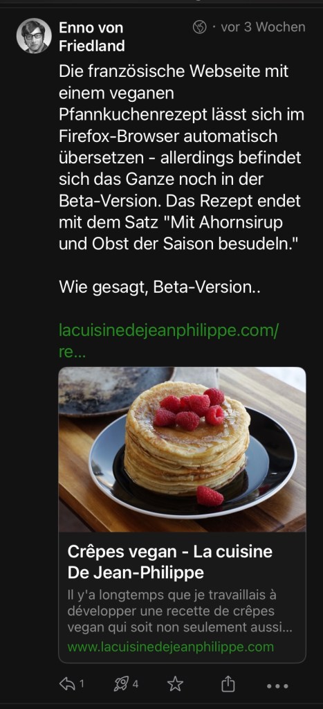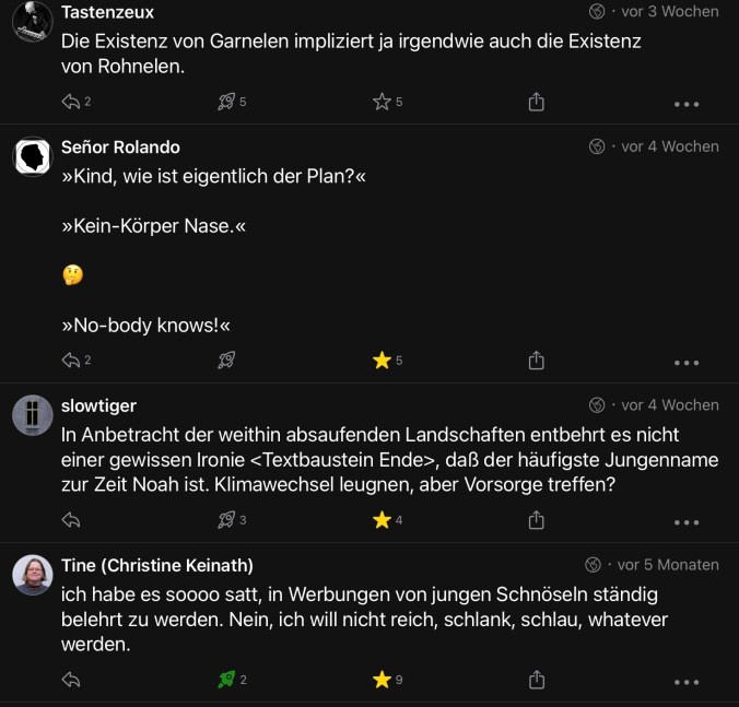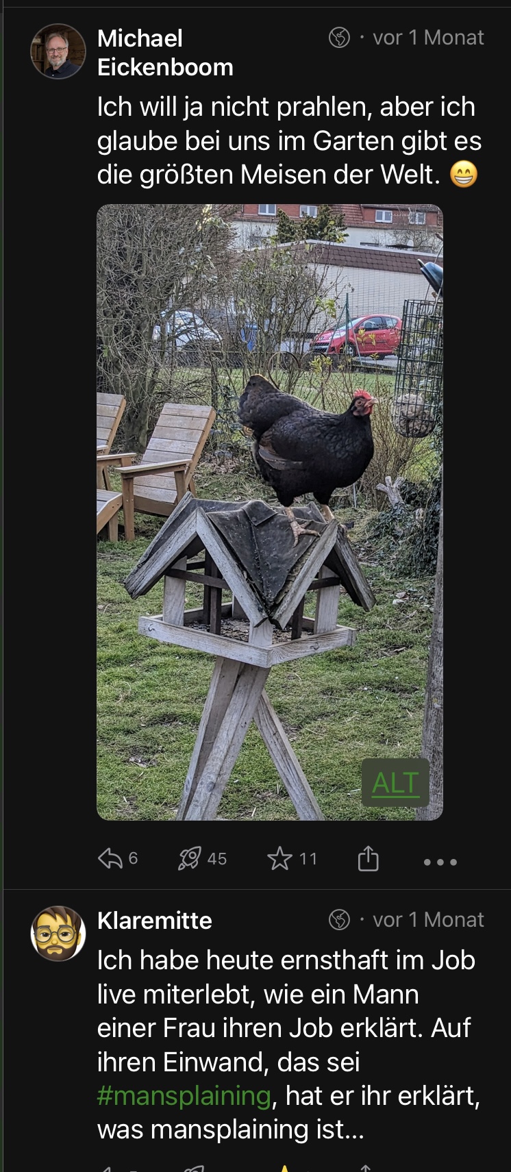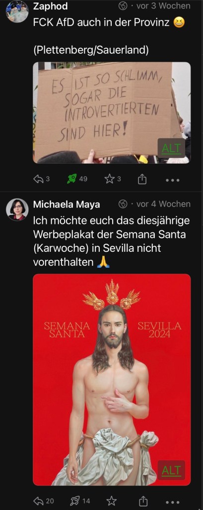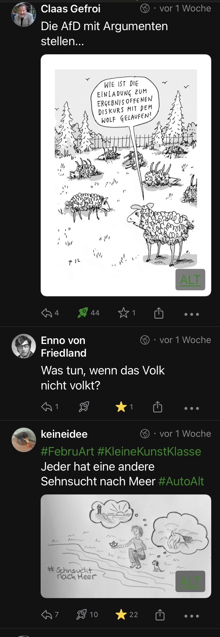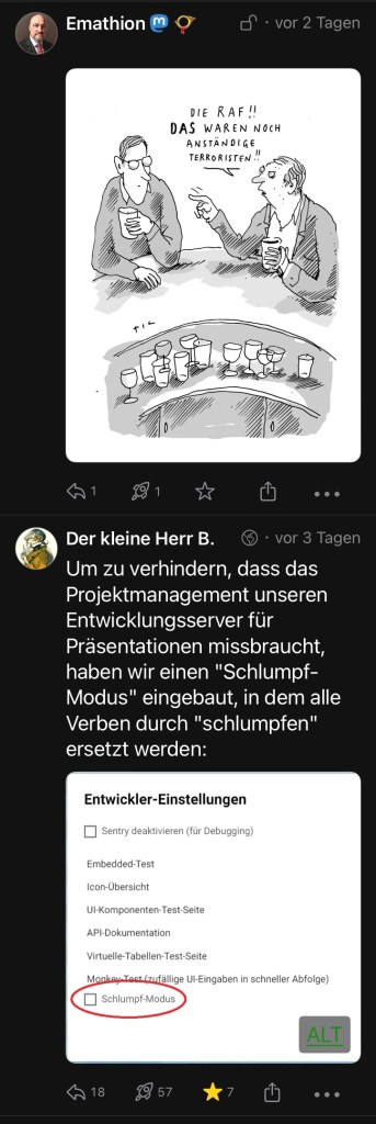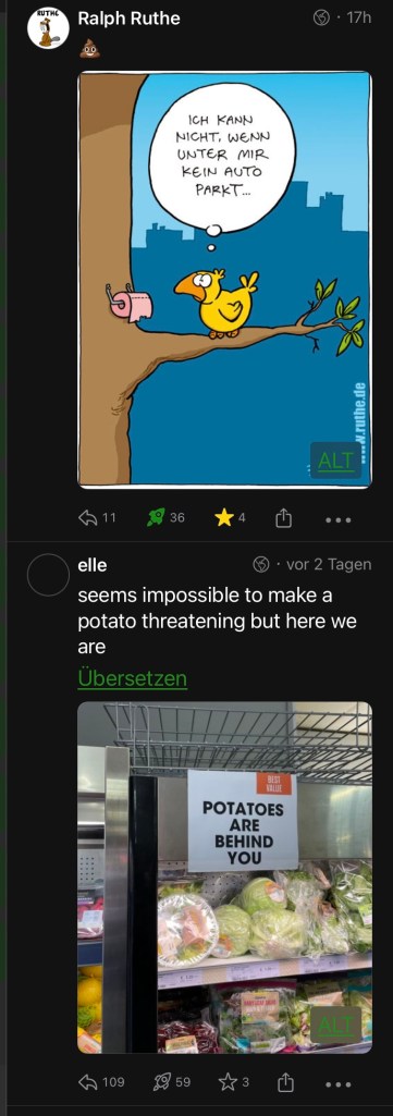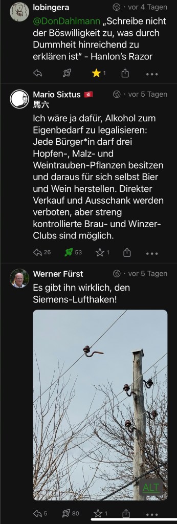 Es sind viele Posts heute. Ich glaube, Mastodon nimm Fahrt auf. Langsam ist es wie das alte Twitter, entspannt, freundlich, lustig, ernsthaft.
