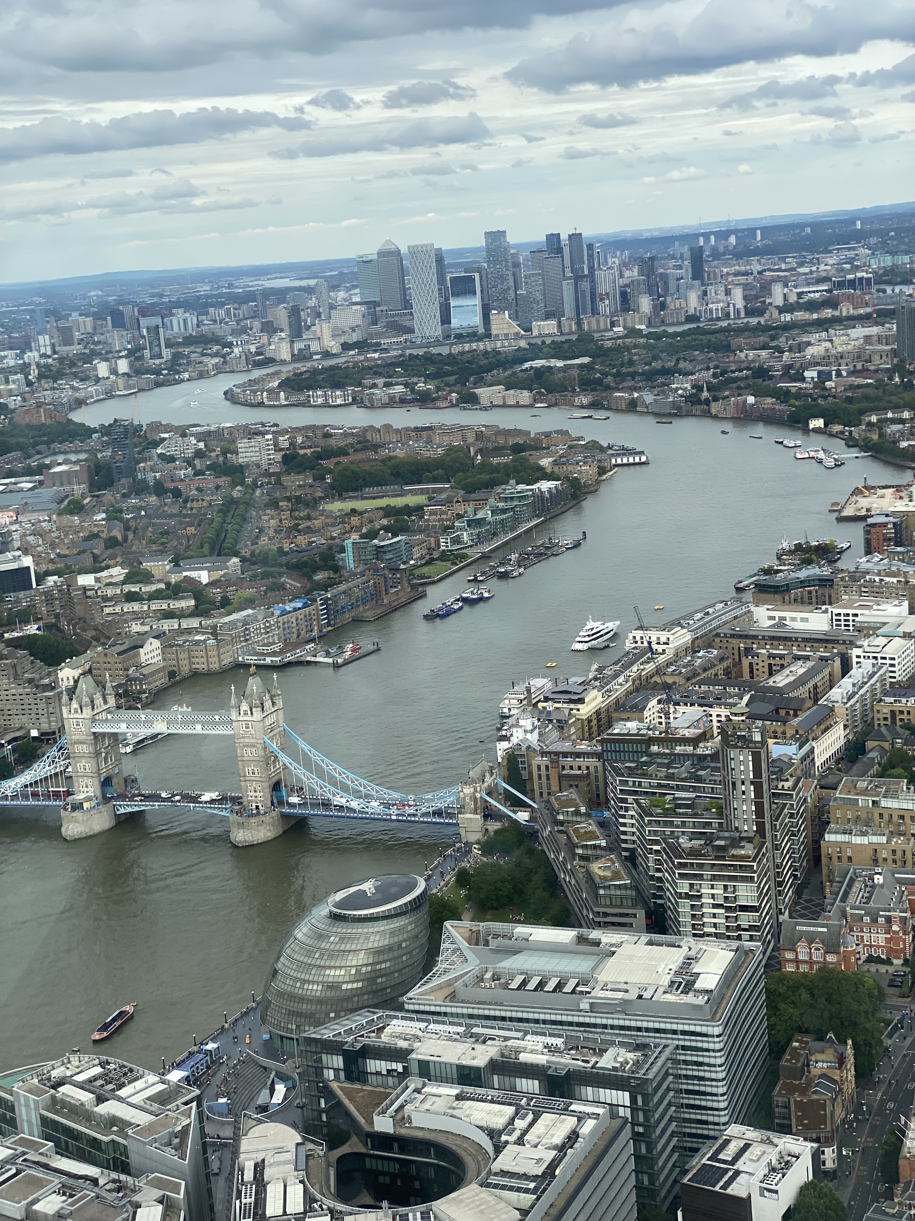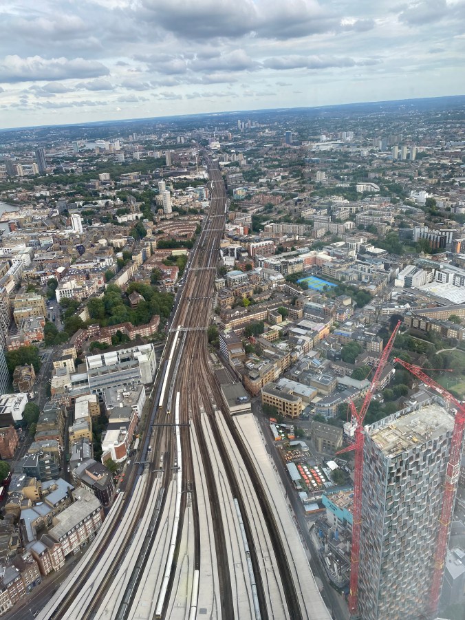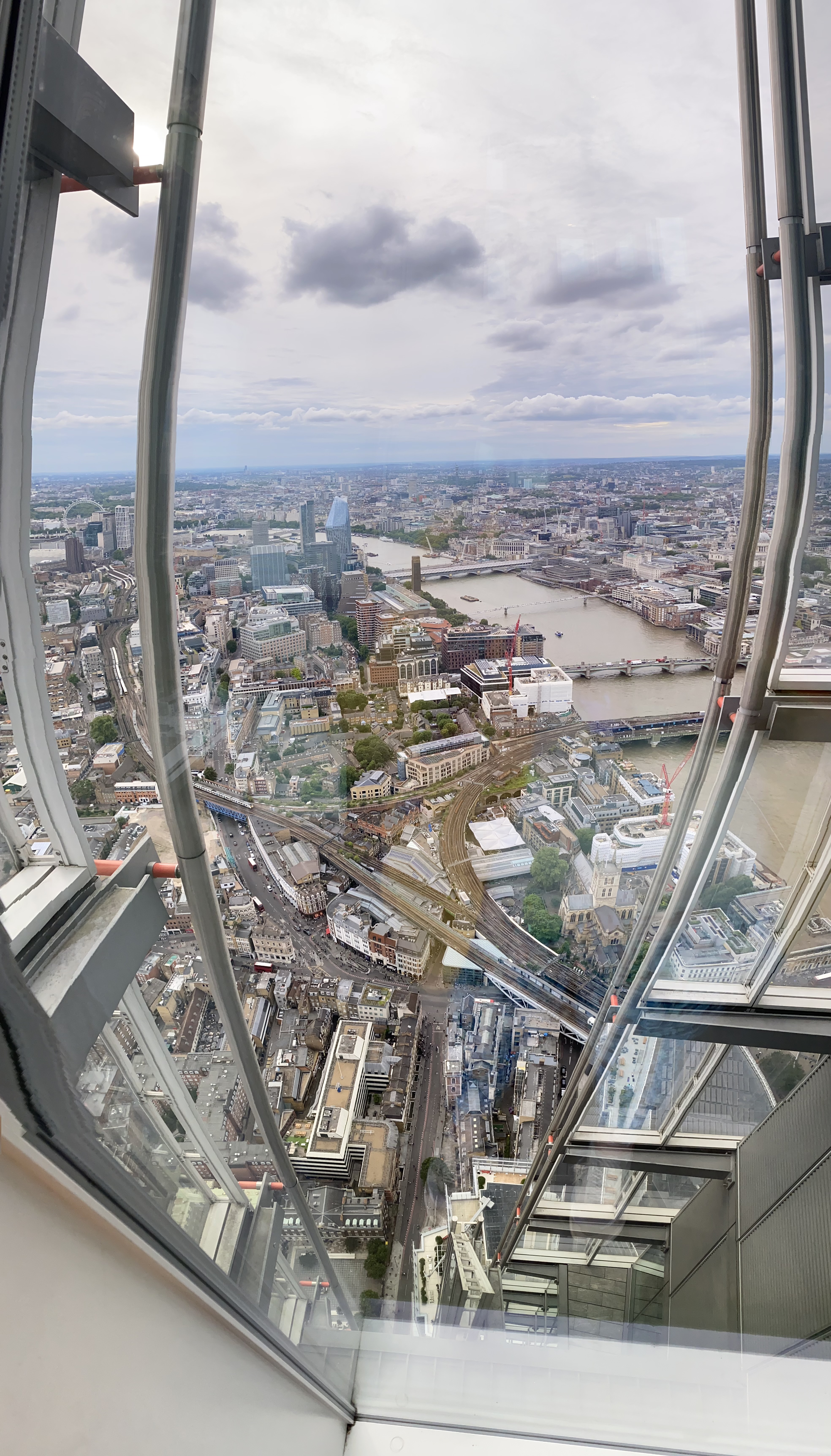 Noch ne Aussicht. Wie versprochen, The Shard ist das höchste Hochhaus, aus dem man auf London gucken kann. Bis zum 72. Stockwerk kann man hoch, sollte aber vorher buchen. Zuerst gibt es Aufzug, der Rest ist zu Fuß zu machen.