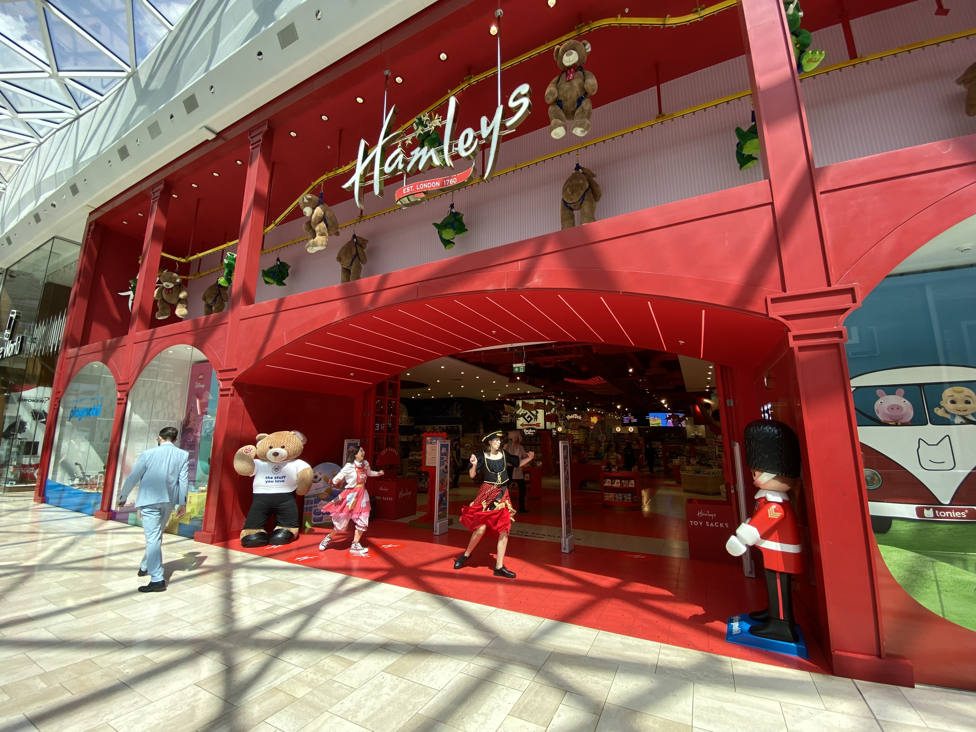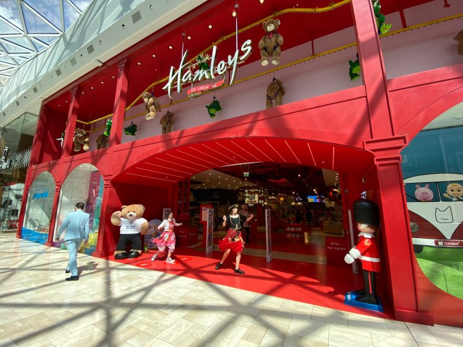 Es musste noch Geld getauscht und ein paar Geschenke besorgt werden für die eintreffenden Kinder. Die stehen auf Quatsch, wohingegen die Eltern pädagogisch Wertvolles vorziehen. Wo bekommt man im noblen Kensington billig aussehende Plastikgeschenke, die an der Decke kleben bleiben oder quietschen? An der Rezeption weiß man Bescheid. Im Westfield Center bekommt man alles.