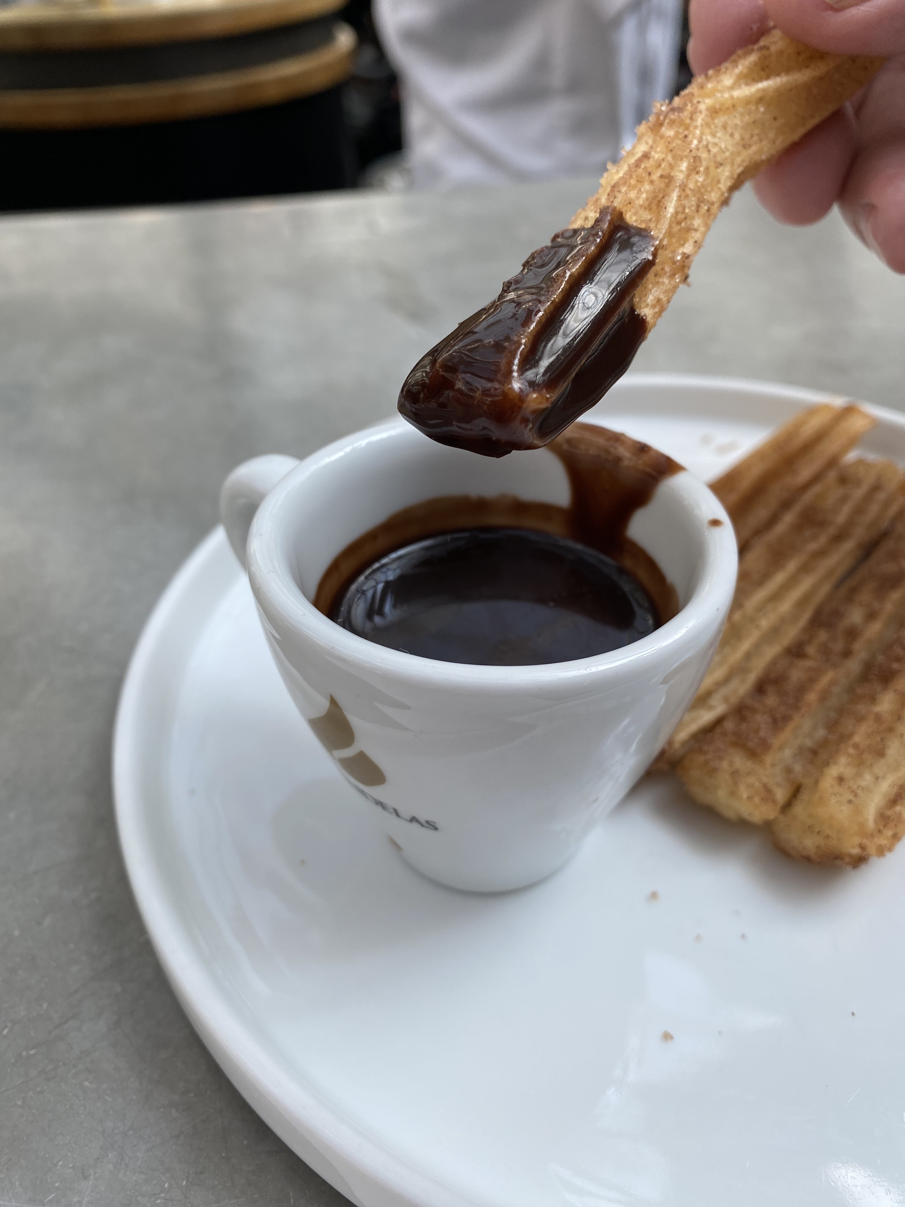 Na gut, es gibt Churros und Kakao und ein Skelett. Und vor einem Laden tanzen sie.