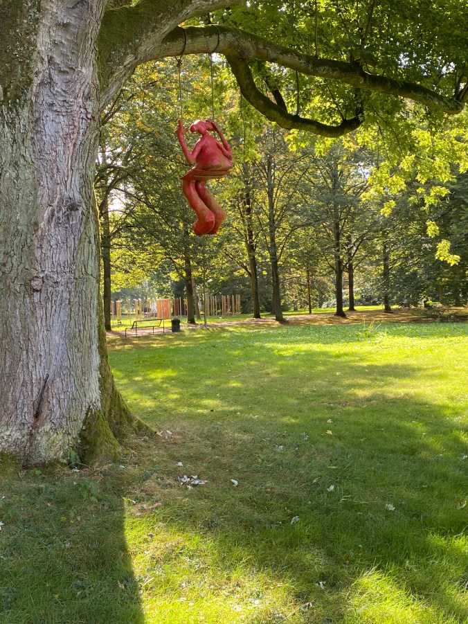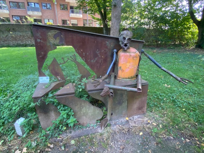 Gestern war dann ein bisschen Abwechslung im Programm. Kennen Sie den Skulpturengarten am Stammheimer Schloss in Köln? Ich kannte ihn bisher auch nicht. Er liegt direkt am Rhein, hat viele alte Bäume und sehr interessante Skulpturen sind auf den Wegen und Wiesen zu finden