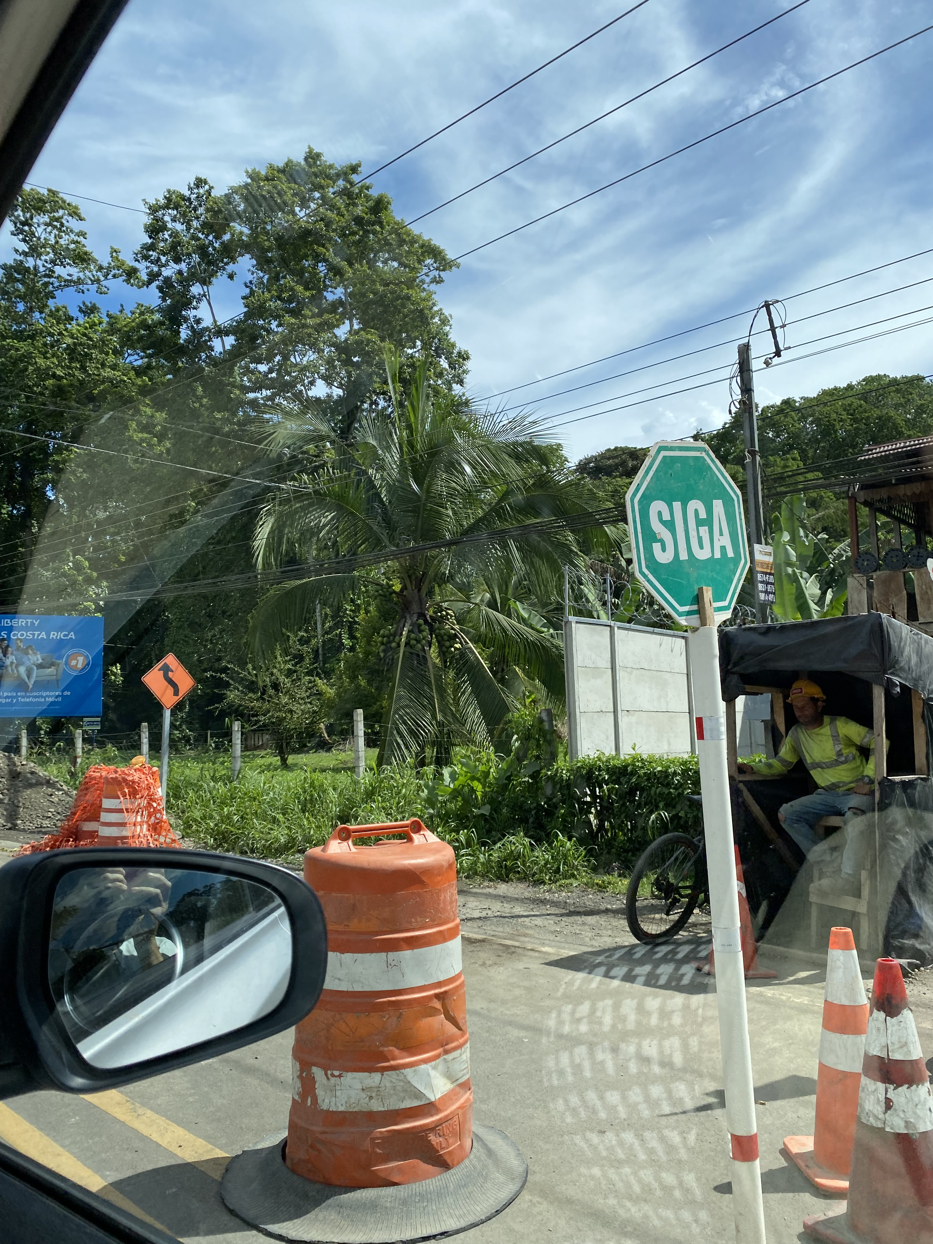 Die Leute arbeiten bei einer Hitze von über 30 Grad und der ganzen Schwüle still vor sich hin. Ob man fahren darf oder nicht, steht auf einem Wendeschild, SIDA ist grün und ALTO ist rot.
