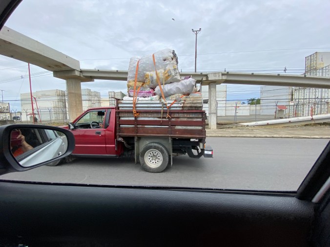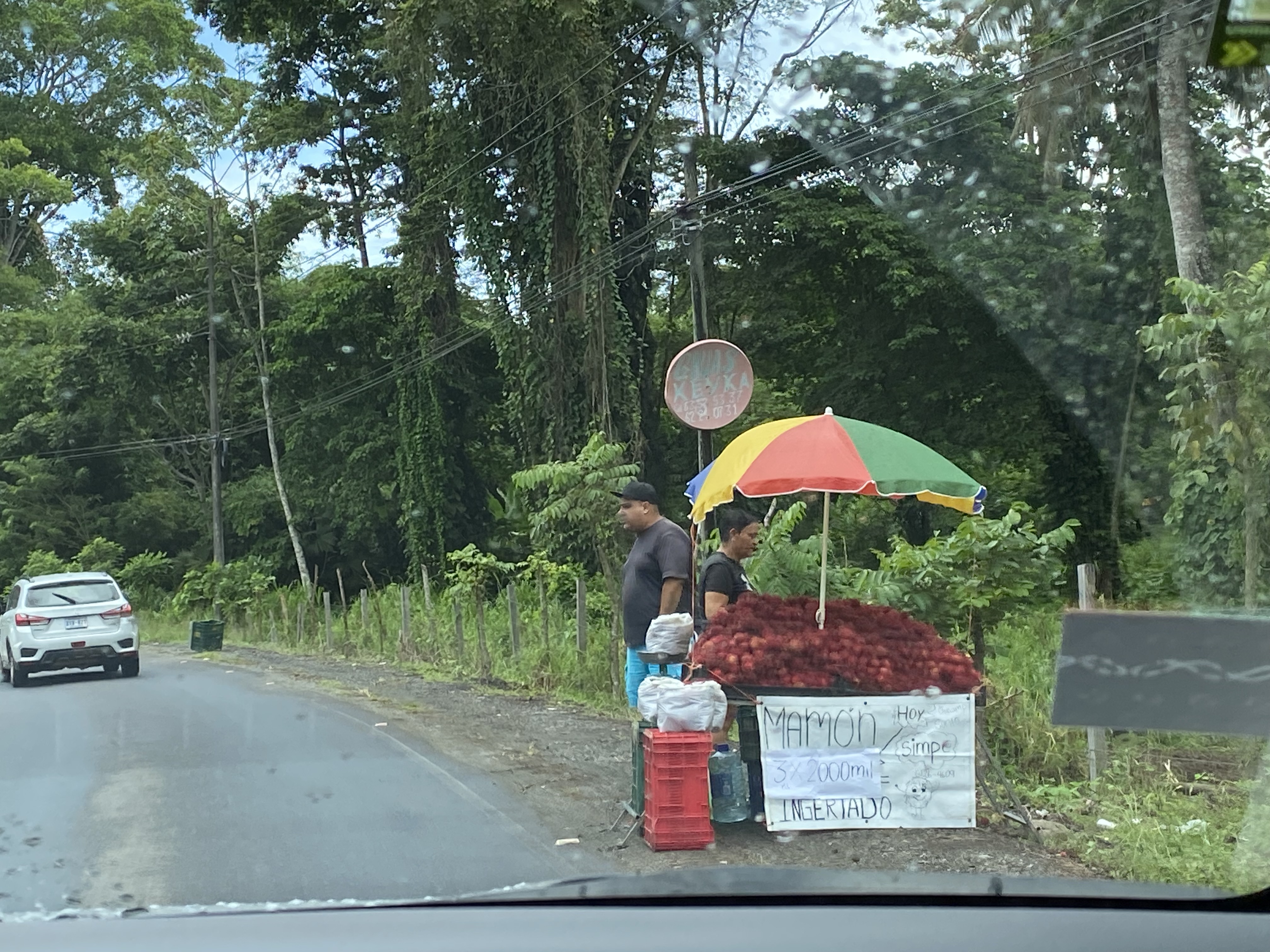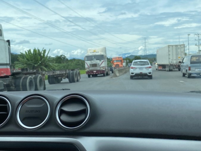 Es gibt zwei große Autobahnen, ein Mal an der Pazifikküste und dann zwischen Puerto Limón und San José. Die ist aber im Werden. Man wechselt unvermittelt auf die andere Spur, gekennzeichnet durch viele Reduktoren. Das sind ziemlich brutale Schwellen in immer engerem Abstand. Wie der Name schon sagt, reduzieren sie alles, Geschwindigkeiten, Bodenbleche, Hoffnungen. Wenn man doch in die andere Richtung will, gibt es Durchlässe. Reduktoren sorgen für Platz. Es biegen dann die riesigen Laster mit Containern um die Ecke. Obst ist drin, Del Monte steht drauf, oder Chiquita.