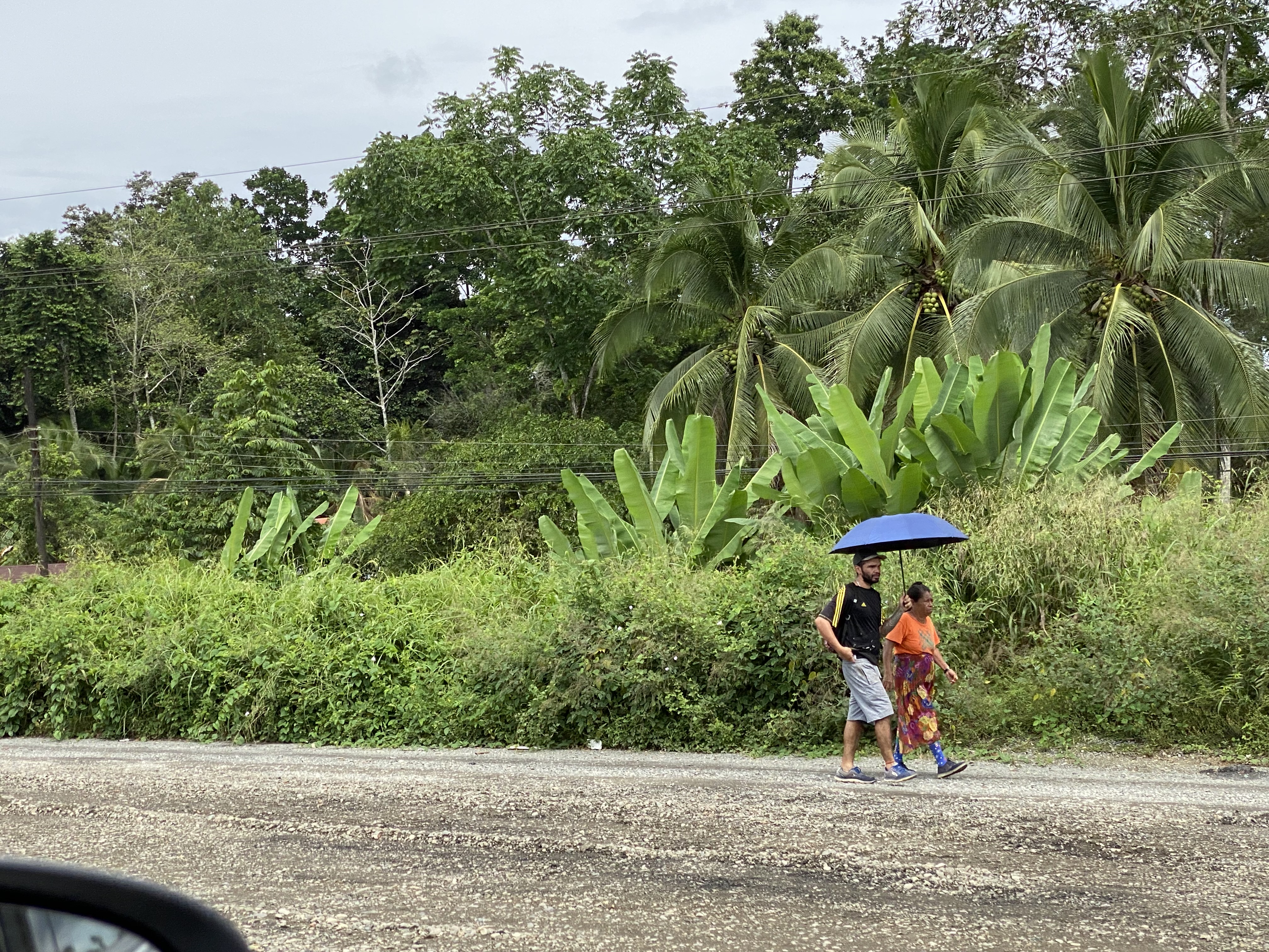 Der Regen ist übrigens warm und angenehm. Doch wenn alles nass ist, ist es schwierig, alles wieder trocken zu bekommen. Die Luftfeuchtigkeit ist so hoch, dass nichts verdunstet. Man kann die Kleidung in den Strom der Klimaanlage hängen, falls es eine gibt, oder man föhnt sie trocken.