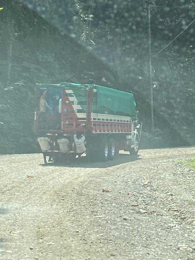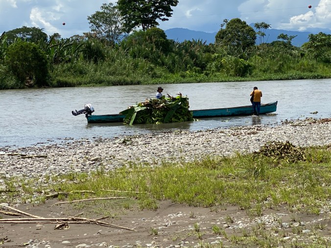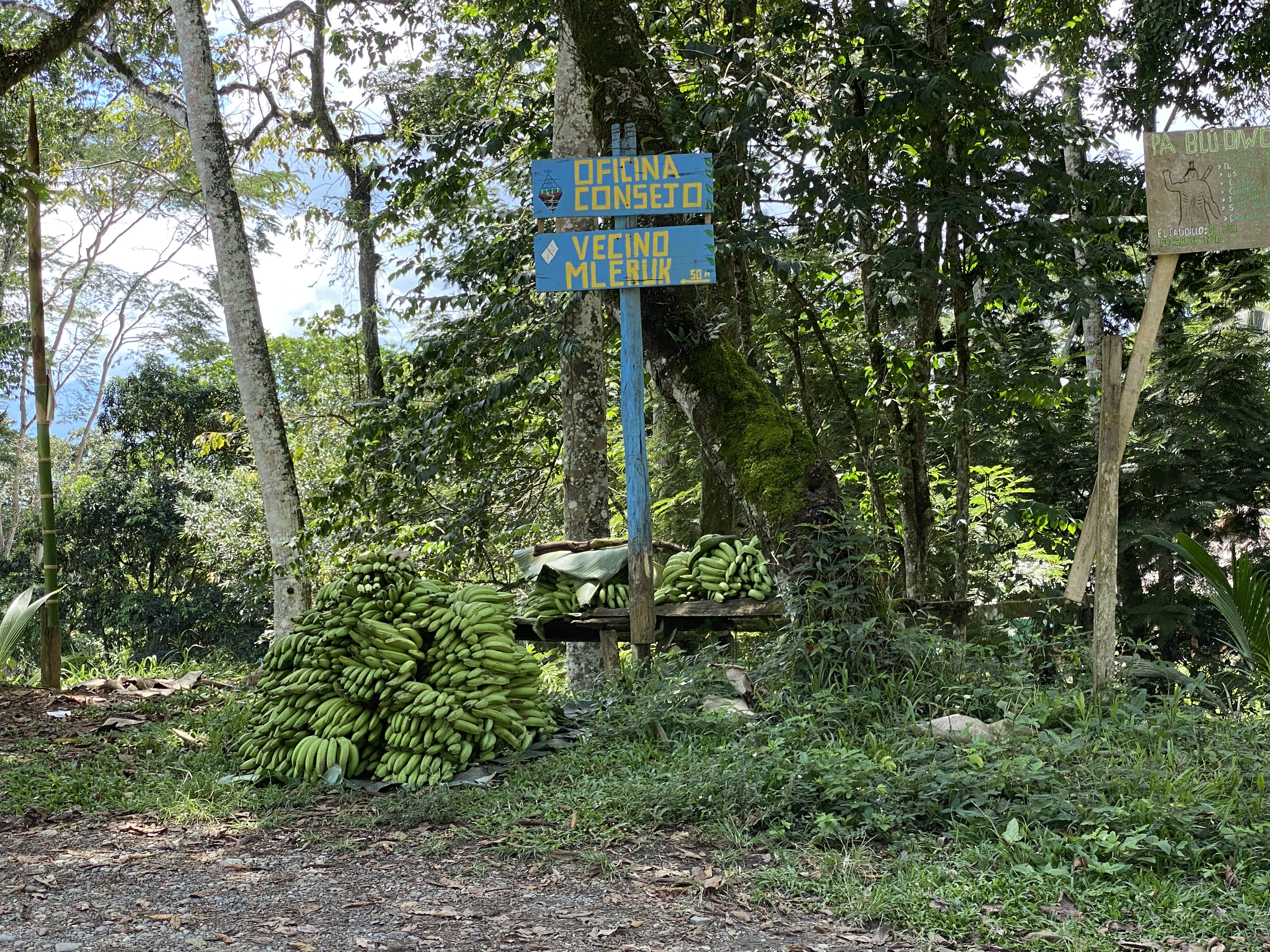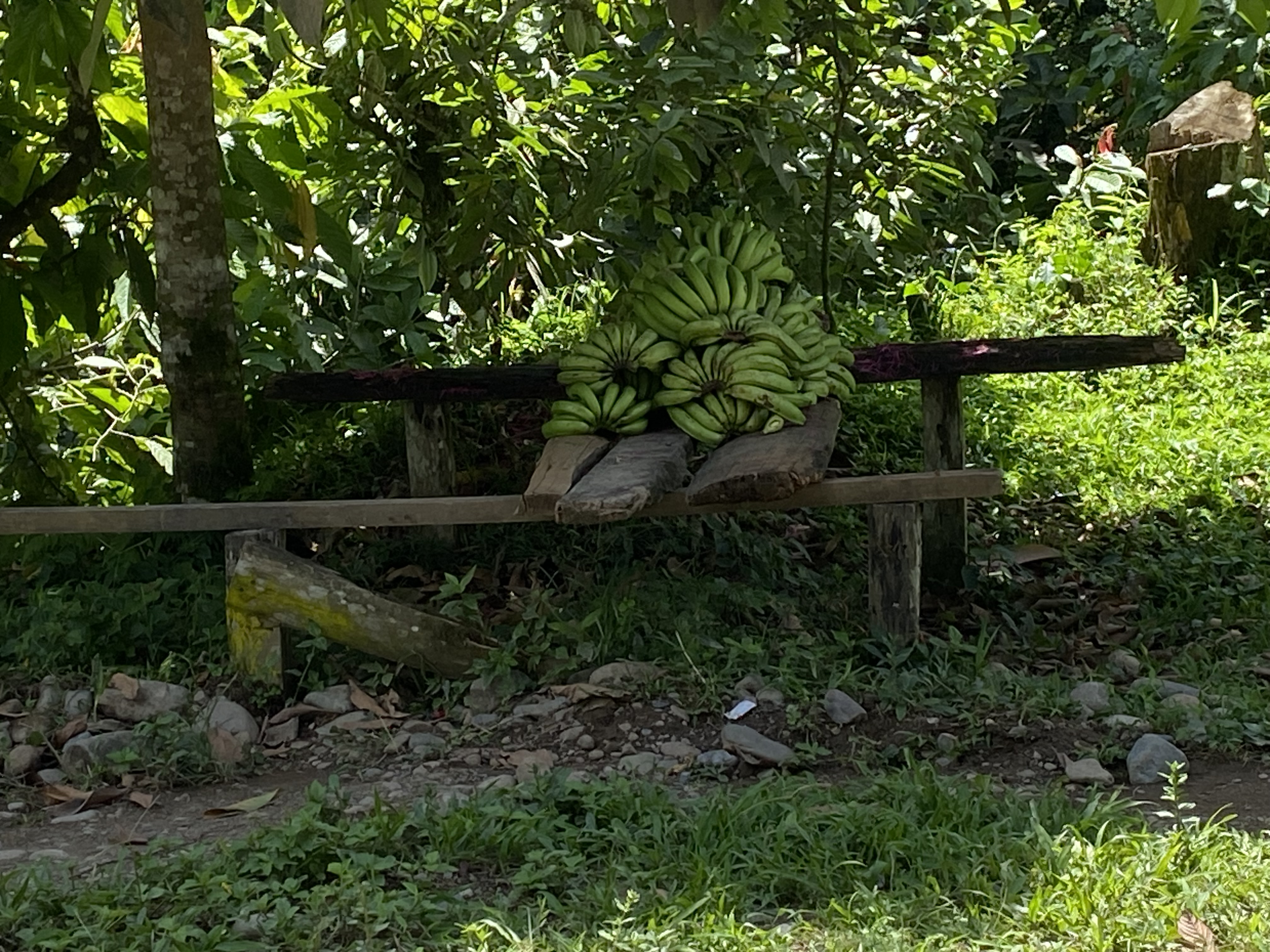 Vor jedem Hof steht ein Holztisch auf dem die Ernte abgelegt wird. Und ein Lastwagen voller junger Leute sammelt sie ein, wiegt sie und fährt sie nach Suretka an den Fluss, nicht an die Küste. Warum das so ist, haben wir nicht rausbekommen. Über dem Fluss leben auch Bribris und da ist auch Panama.