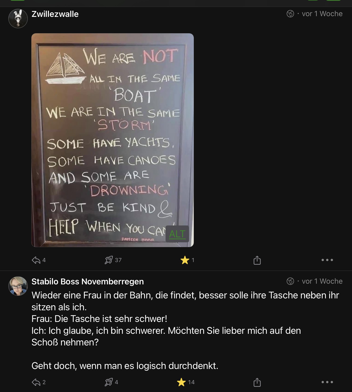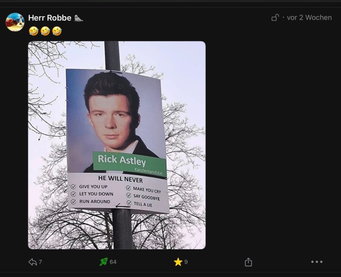 Tut mir sehr leid, dass es so politisch ist dieses Mal und weniger witzig als geplant. Post können halt nur den Weltenlauf kommentieren nicht ändern.
