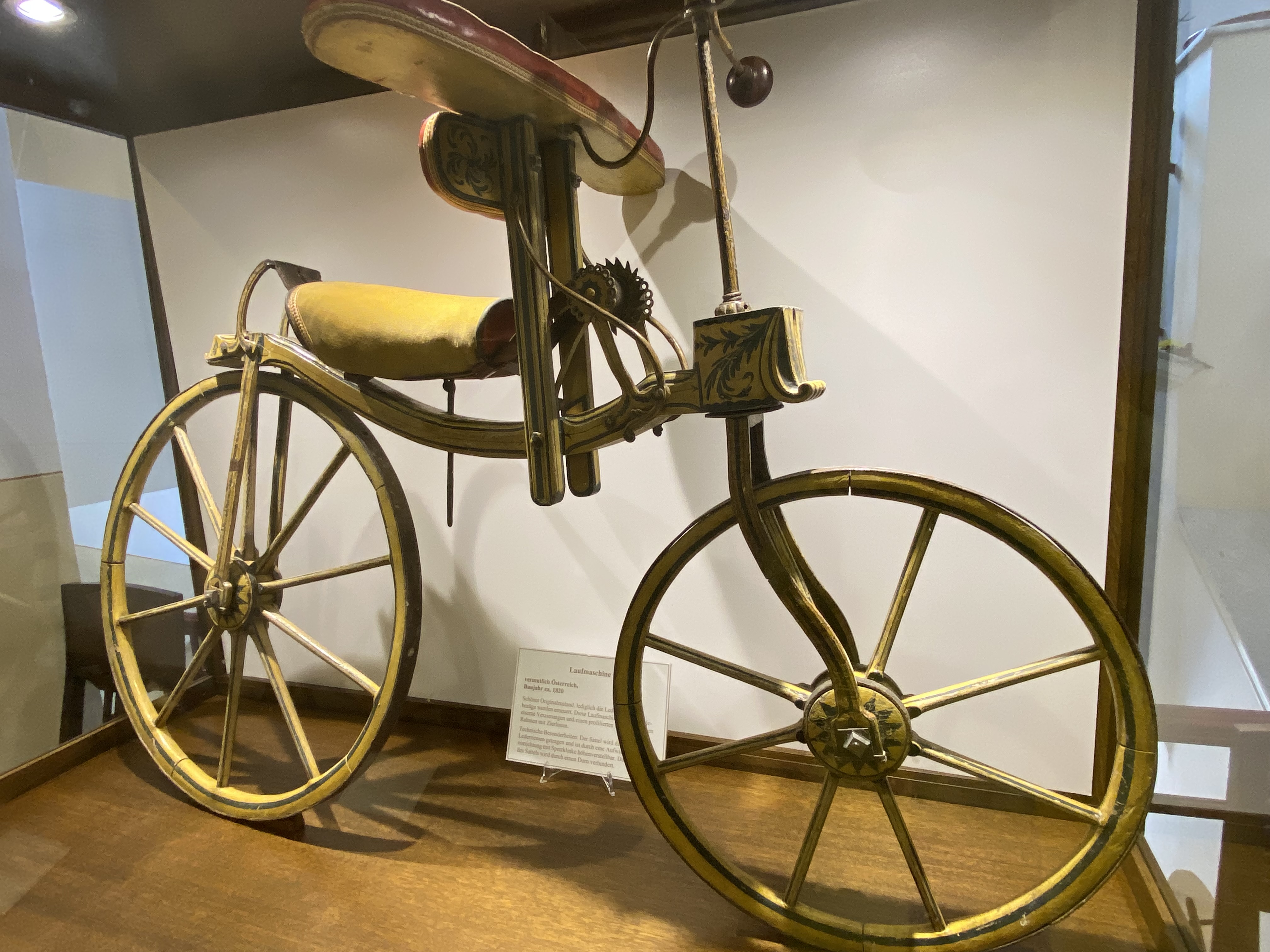 Wie faszinierend ist die Geschichte vom Laufrad über das Hochrad zum heutigen Fahrrad. Das Laufrad konnte sehr bequem sein, man kam aber nicht sonderlich schnell vorwärts. So kam man auf die Idee, Pedale an die Nabe zu schrauben und das Vorderrad so groß wie möglich zu machen.