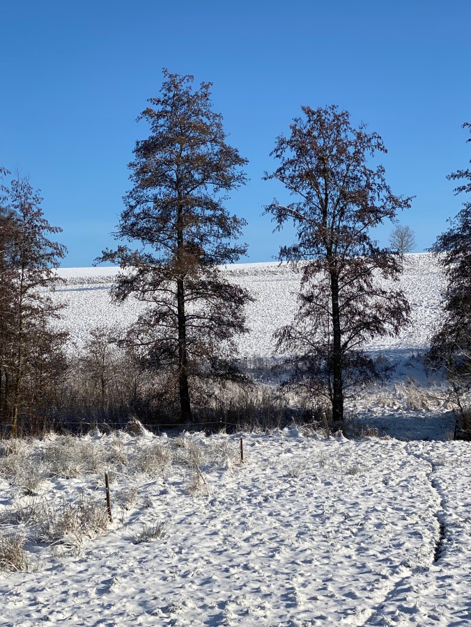 Die Schulbusse fuhren nicht, die Streufahrzeuge kamen nicht nach, die Schneeräumer kippen den ganzen Schnee auf den frisch geräumten Bürgersteig. Und ich bin ganz verwegen eine steile Auffahrt hochgefahren, trained by Schwarzwald. Beim Rückwärtsrunter rutschte ich dann leicht ins Gebüsch. Oha! Der Gast im Haus schob mich dann an und ich konnte oben wenden. Lustig, es war ein Schwarzwälder.
